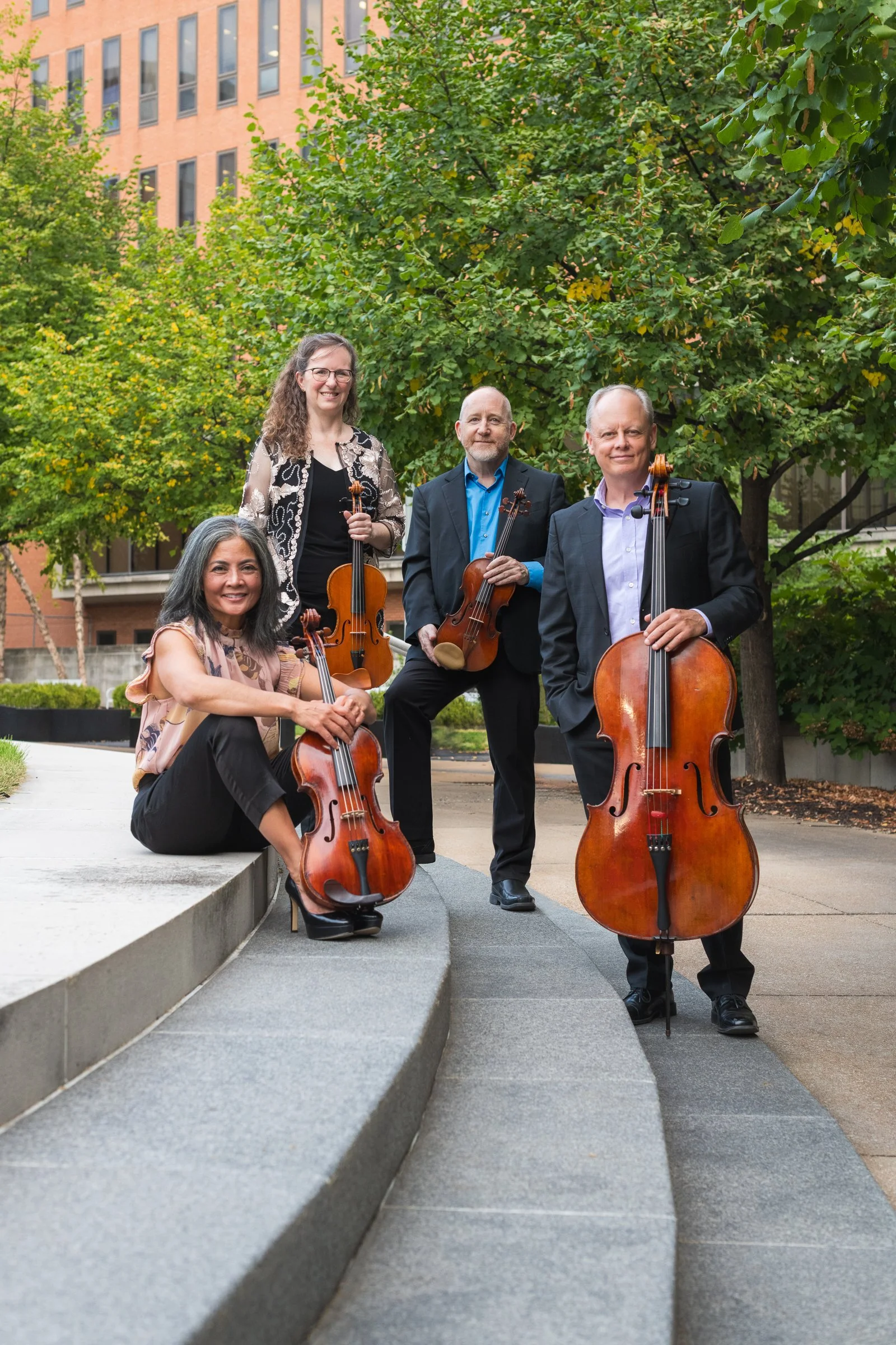 The members of the Arianna String Quartet serve on the faculty at the University of Missouri-St. Louis as professors of violin, viola, and cello. On the UMSL campus, the Arianna Quartet presents their own concert series, and also enriches the academic experience of students outside of the Music Department by visiting classes in physics, business, history, philosophy, art, and language to actively demonstrate the interdisciplinary connections between music and these seemingly disparate disciplines. The ASQ also presents an interdisciplinary performance and lecture series “First Mondays with the ASQ”, at KWMU, St. Louis Public Radio. The Arianna Quartet were recipients of the 2022 University of Missouri-St. Louis Chancellor’s Award for Excellence in Collaborative Research and Creativity.